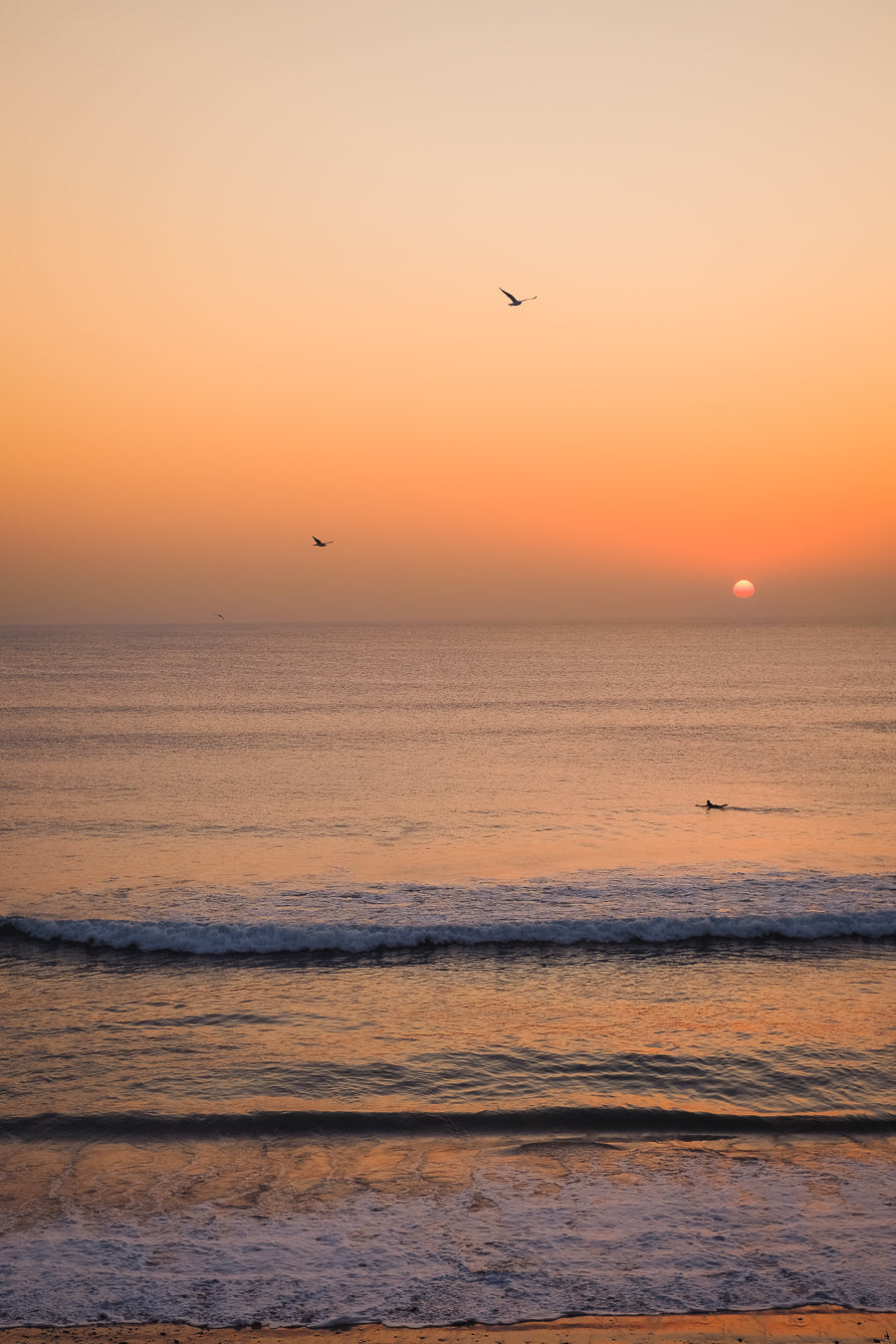 I go into the water, and hesitate at the first waves, and get caught by a few. But then another set comes, I take off on the steepest part to catch the wave - and manage to stay on my board, gliding all the way across a beautiful wave. What a feeling. I stay in the water until sunset. Arms heavy, energy low - but completely happy. A perfect final session.